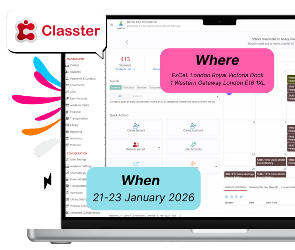 Get hands on with Classter, meet our product experts, and discover what a truly unified School, Student, and Learning Management System can do for your institution.